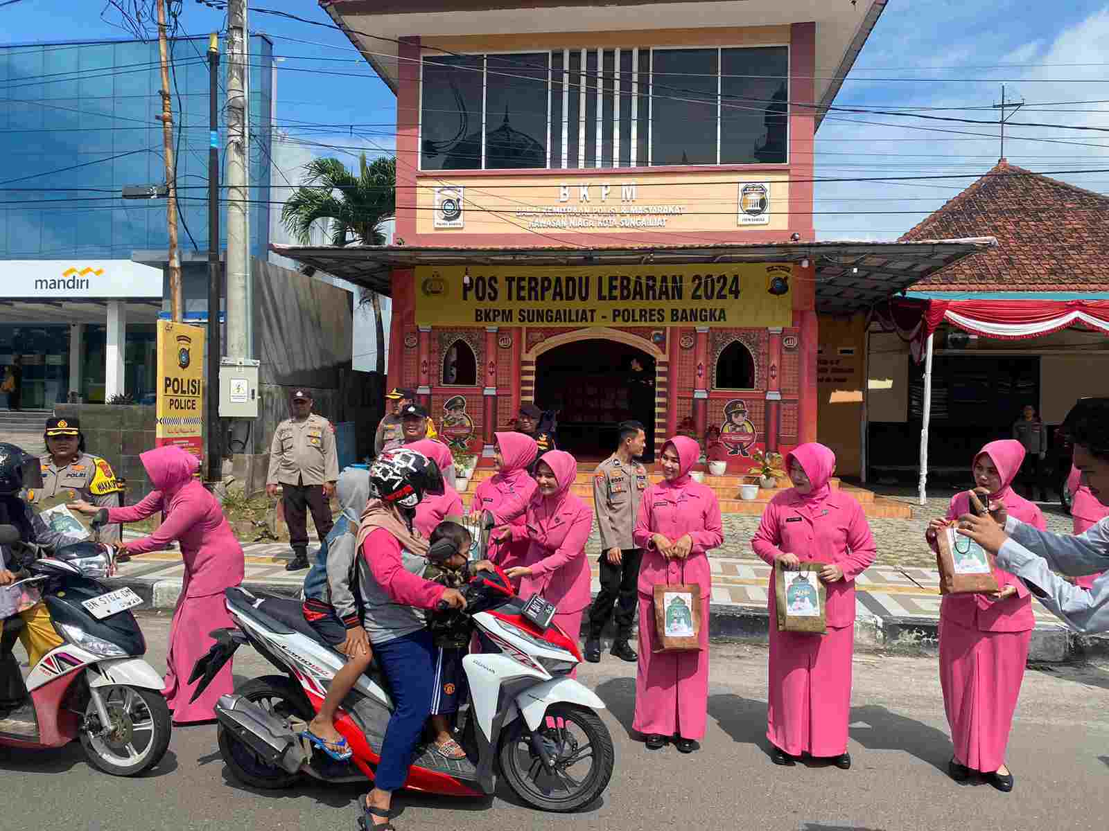 SUNGAILIAT, MB1 II Kapolres Bangka AKBP Toni Sarjaka, SH., S.I.K., M.I.K., bersama Ketua Bhayangkari Cabang Bangka Ny. Ny.Yenny Toni Sarjaka berkunjung ke Pos Pelayanan dan Pengamanan Operasi Ketupat ...