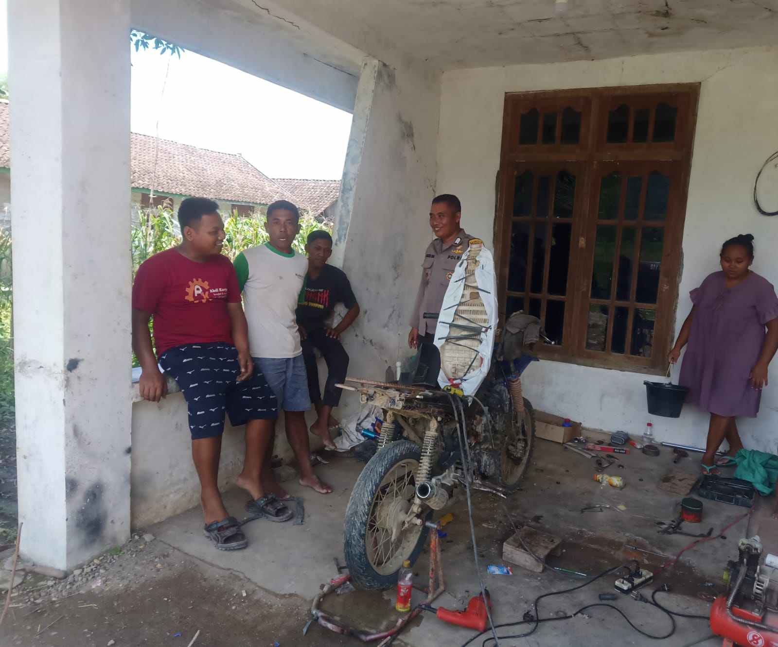 BOJONEGORO, MB1 II Dalam rangka mendekatkan diri dengan warga dan menjaga situasi tetap kondusif di desa Binaan Bripka agushan Haryono aktif melaksanakan sambang ke desa Binaannya bertempat di bengkel...