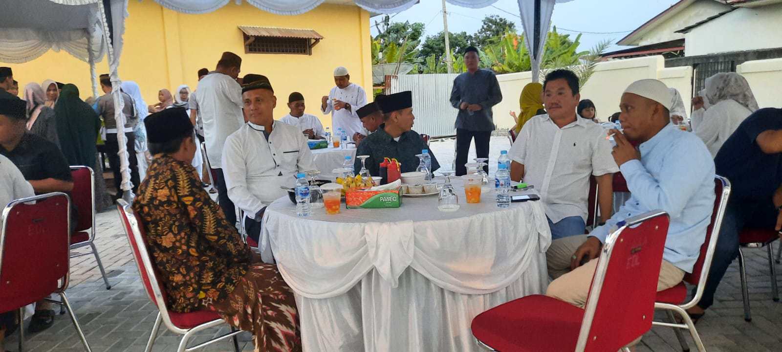 BELITUNG – MB1 II Suasana keakraban dan kekompakan ditunjukan Kapolres Belitung AKBP Didik Subiyakto bersama anggotanya tampak saat berbuka puasa di Masjid Darul Muttaqin Polres Belitung, Jum...
