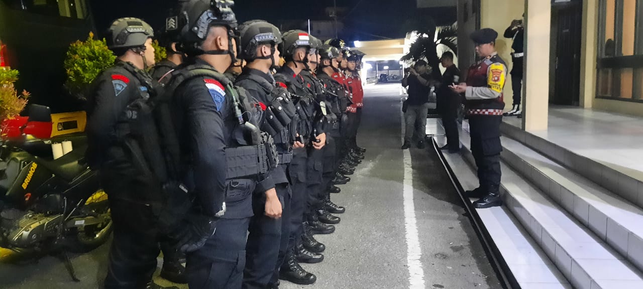 BELITUNG, MB1 II Polres Belitung bersama personel Brimob Pelopor B Polda Babel menggelar patroli gabungan guna mewujudkan situasi Keamanan Ketertiban Masyarakat yang aman dan kondusif dalam pelaksanaa...