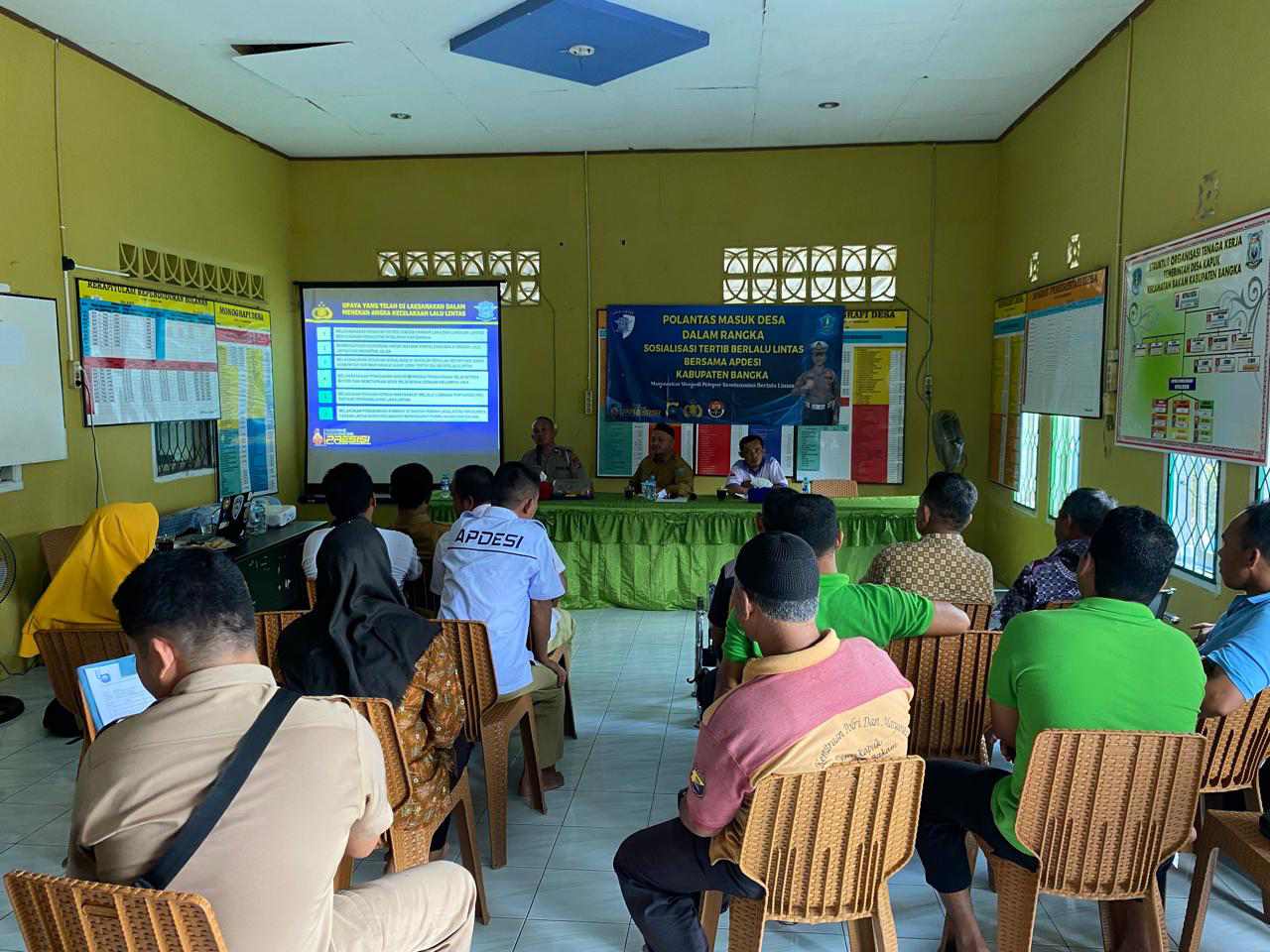 SUNGAILIAT, MB1 II Satlantas Polres Bangka bersama Asosiasi Pemerintah Desa Seluruh Indonesia (APDESI) Kabupaten Bangka menggelar sosialisasi tertib lalu lintas di Kantor Desa Kapuk, Kecamatan Bakam, ...