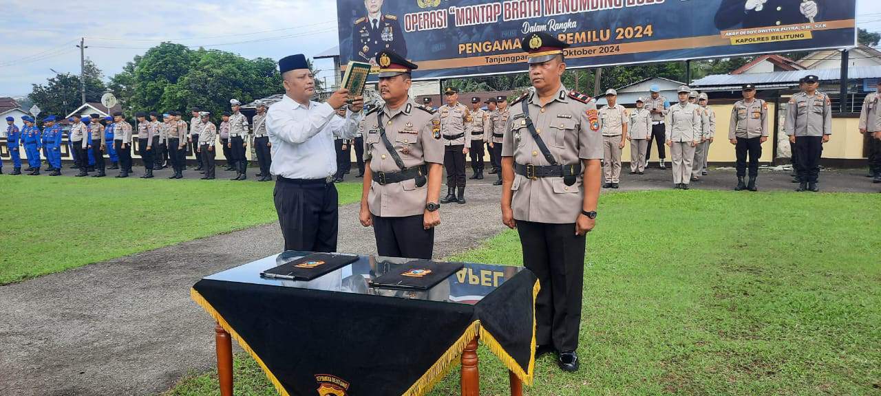 BELITUNG, MB1 II Polres Belitung menggelar Upacara Serah Terima Jabatan (Sertijab) Ps.l, Kasat Samapta dan Ps, Kabag log Polres Belitung di Halaman Mapolres Belitung, Selasa (19/11/2024). Upacara dipi...