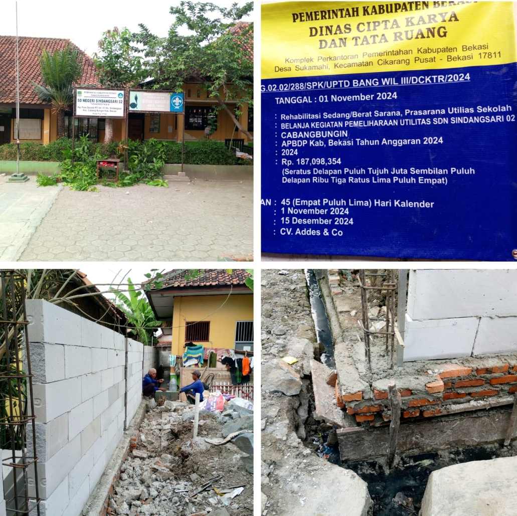 KABUPATEN BEKASI, MB1 II Pembangunan Pemeliharaan rehabilitas sedang maupun berat, Sarana dan Prasarana Utilitas di SDN Sindangsari 02 Kecamatan Cabangbungin Kabupaten Bekasi. Kini jadi sorotan, bagai...
