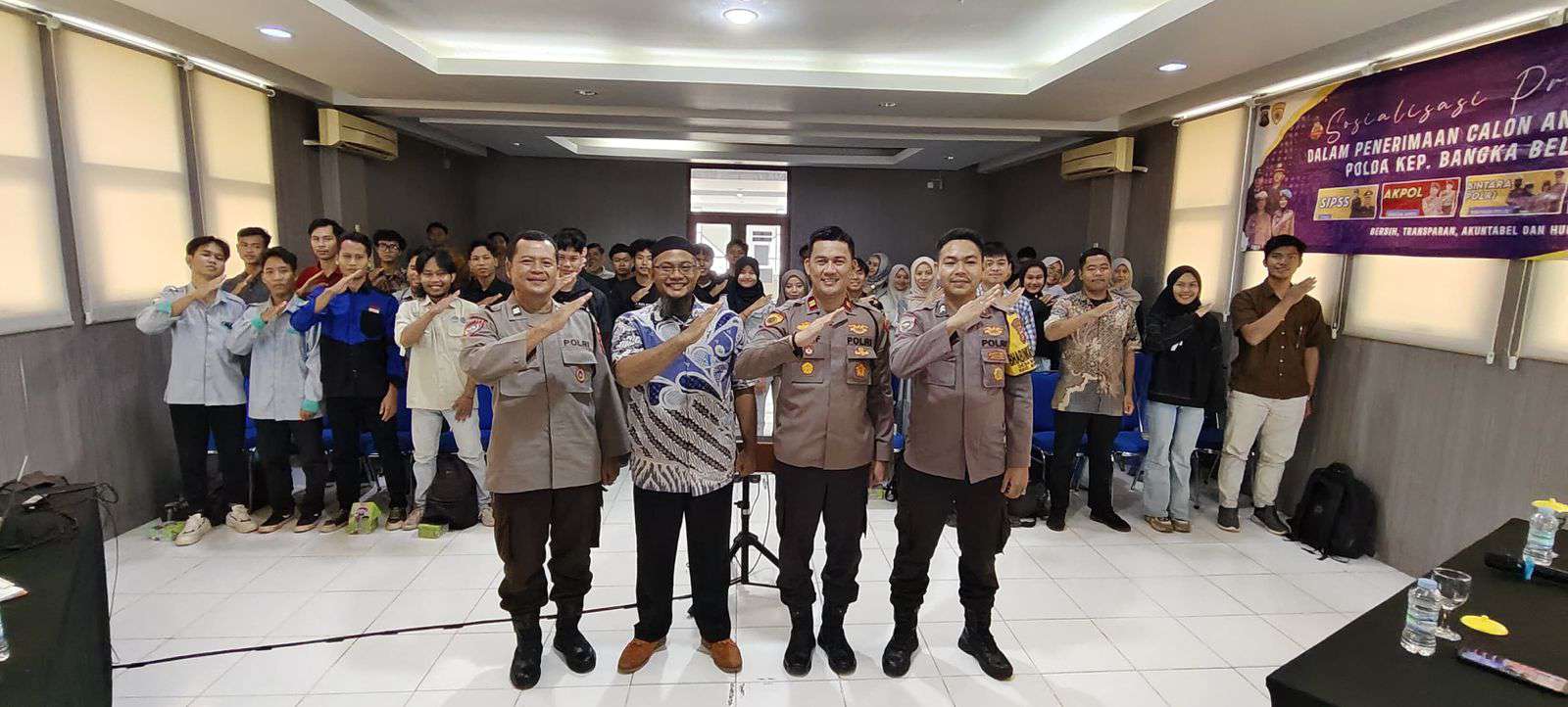 SUNGAILIAT, MB1 II Kapolsek Merawang, Iptu Syafruddin, S.Psi., memimpin sosialisasi Bantuan Komunikasi Khusus (Bakomsus) terkait sektor Pertanian, Perikanan, dan Kelautan yang diadakan di Gedung Seman...