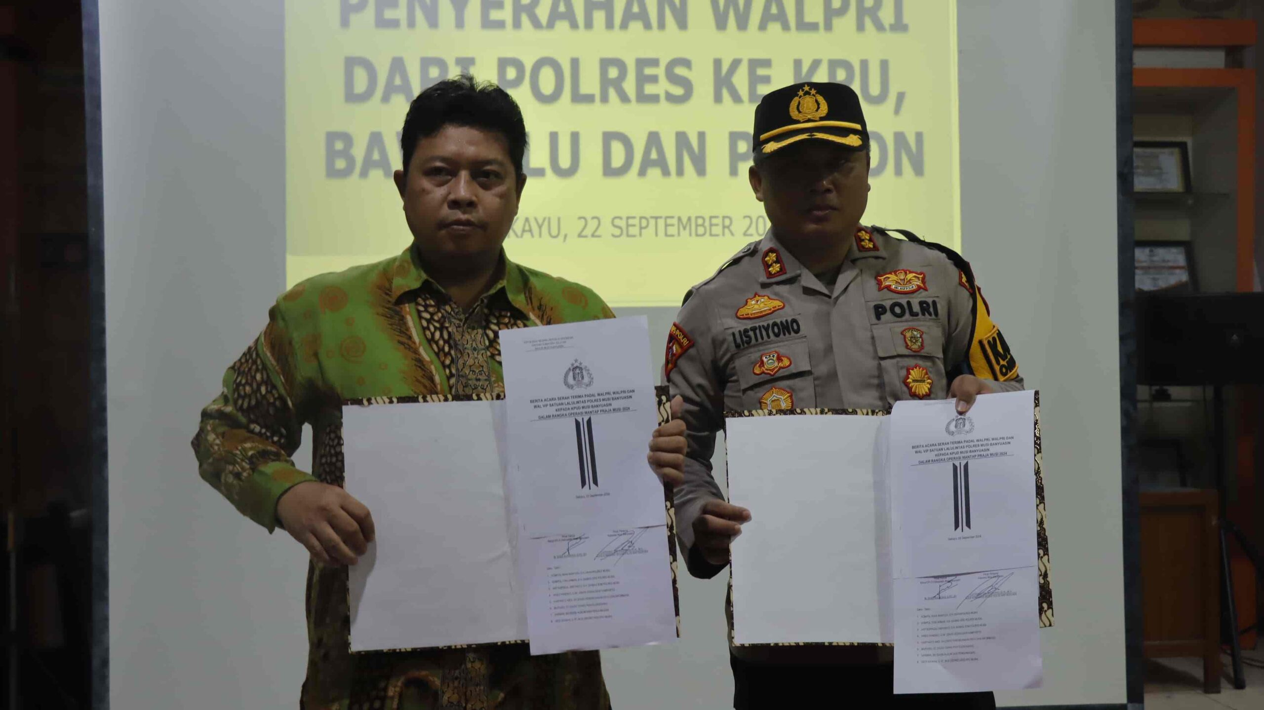 MUSI BANYUASIN, MB1 II Sebanyak 20 personil Polres Muba yang ditunjuk sebagai Walpri (pengawal Pribadi) kedua pasang calon bupati dan wakil Bupati Muba, Ketua KPU Muba dan Ketua Bawaslu Muba diserahka...