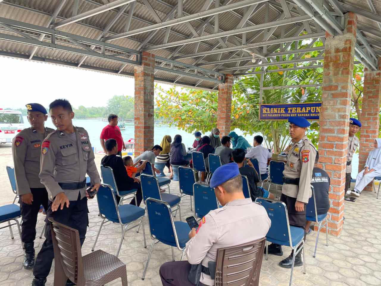 SUNGAILIAT, MB1 II Udara pagi yang sejuk di pesisir Bangka menjadi lebih hangat dengan pelaksanaan kegiatan Klinik Terapung yang diselenggarakan oleh Polairud Polres Bangka bersama Ditpolairud Polda K...
