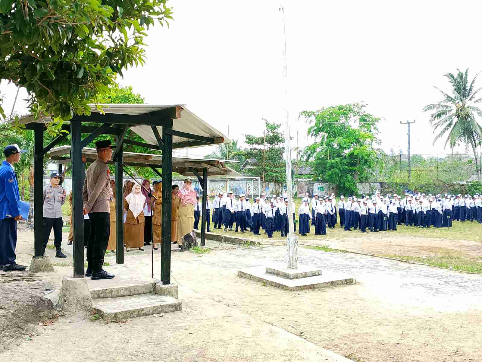 SUNGAILIAT, MB1 II Suasana penuh semangat kebangsaan terasa kental di lapangan SMP N 1 Pemali, Desa Air Ruai, Kecamatan Pemali, Kabupaten Bangka, saat upacara bendera berlangsung pada Senin pagi (23/9...