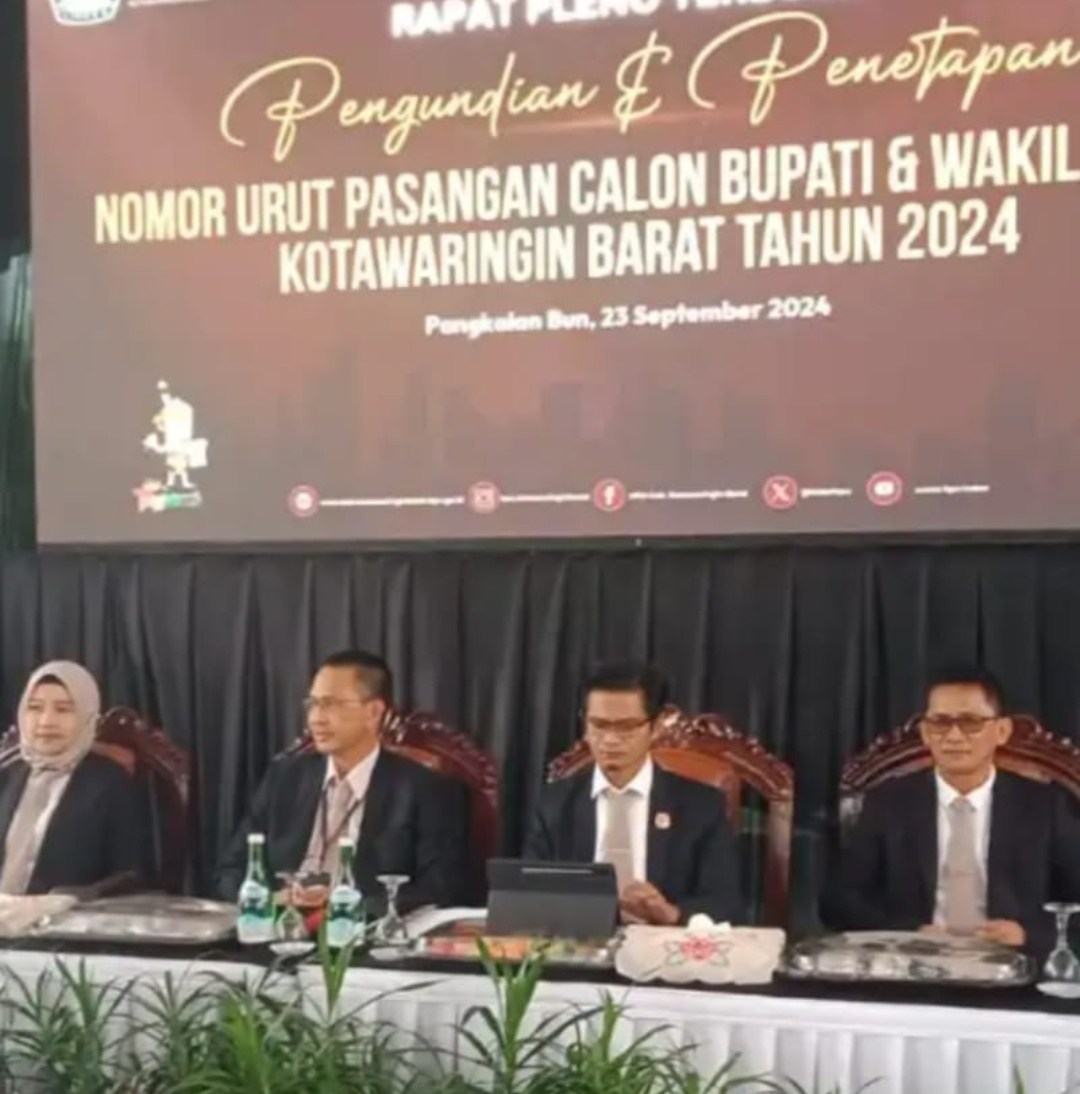 KOTAWARINGIN BARAT – KALTENG, MB1 II Pangkalan Bun, Penetapan nomor urut paslon Bupati dan Wakil Bupati Kotawaringin Barat dilaksanakan di kantor Komisi Pemilihan Umum Kobar dijalan Iskandar Kec...