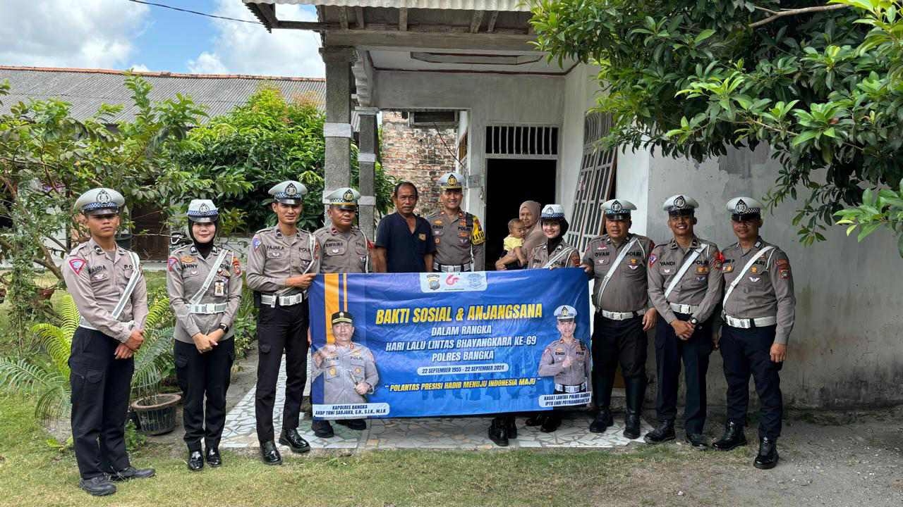 SUNGAILIAT, MB1 II Satuan Lalu Lintas (Satlantas) Polres Bangka mengadakan kegiatan bakti sosial dalam rangka memperingati Hari Lalu Lintas Bhayangkara ke-69, di beberapa lokasi di Kota Sungailiat, te...