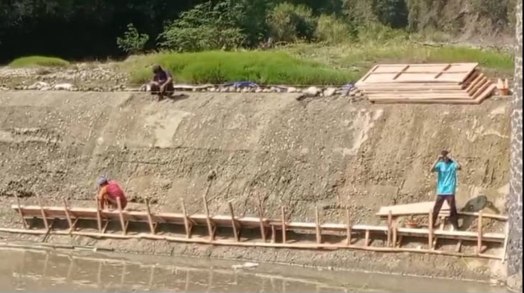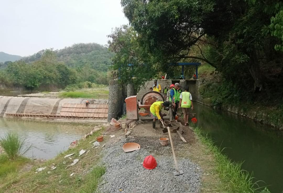 TANJUNGSARI – BOGOR, MB1 II Terpantau di lokasi proyek oleh Lsm Kaliber Indonesia Bersatu Distrik 04 Kabupaten Bogor, Para pekerja di proyek Rehabilitasi Jaringan Irigasi D.I Cibeet Cikumpeni di...