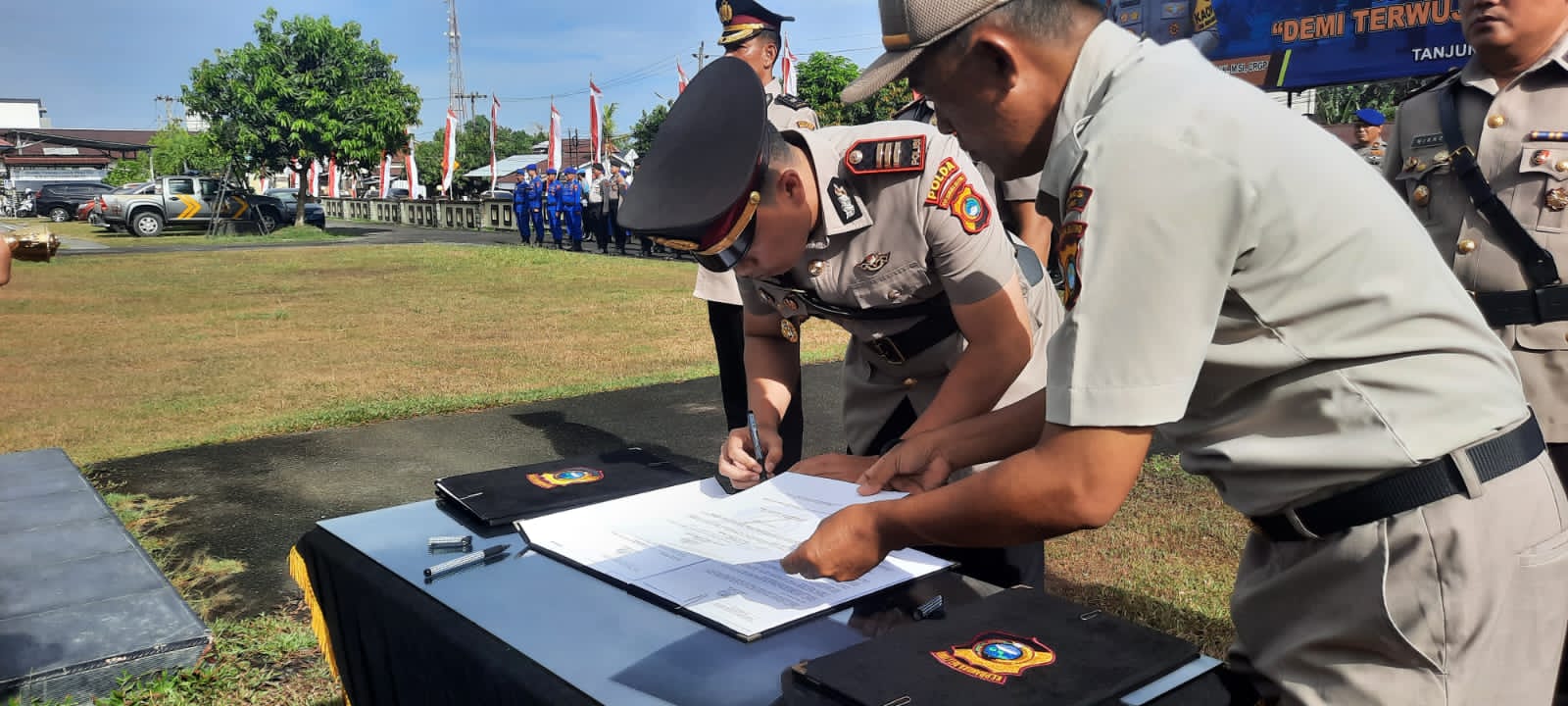 BELITUNG, MB1 II Kapolres Belitung AKBP Deddy Dwitiya Putra, S.H, S.I.K, memimpin upacara pelantikan dan serah terima jabatan (sertijab) sejumlah Pejabat Utama (PJU) Polres Belitung. Bertempat di Lapa...