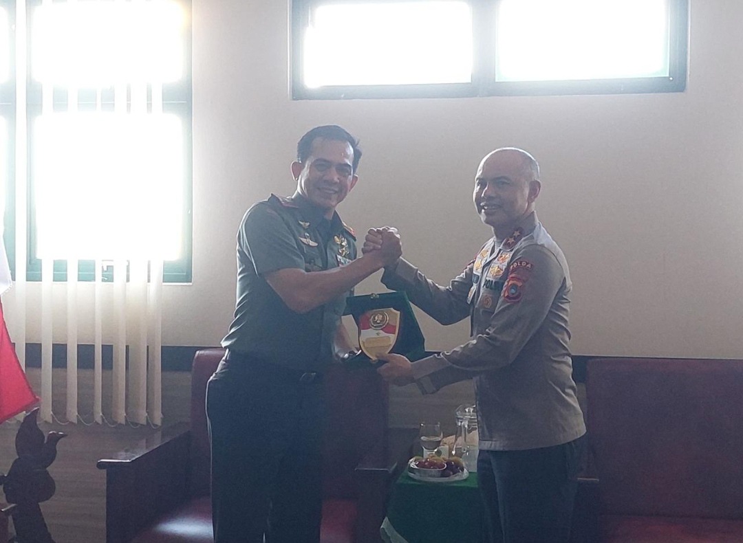 PANGKALPINANG, MB1 II Danrem 045/Garuda Jaya Brigjen TNI Safta Feryansyah S.E.,S.I.P.,M.Han didampingi Kasrem, para Kasi Kasrem sambut kunjungan Kapolda Kep.Bangka Belitung Irjen Pol Drs.Hendro Pandow...