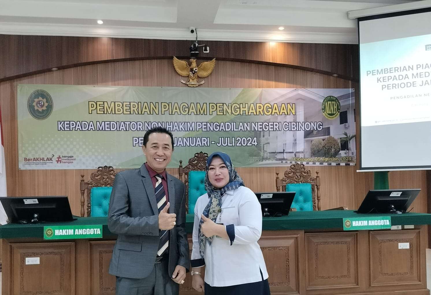 BOGOR, MB1 II Ketua Pengadilan Negeri Cibinong telah memberikan penghargaan kepada mediator non hakim di PN Cibinong. Pengadilan Negeri Cibinong merupakan salah satu pengadilan tingkat pertama di wila...
