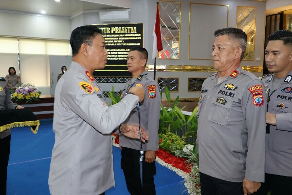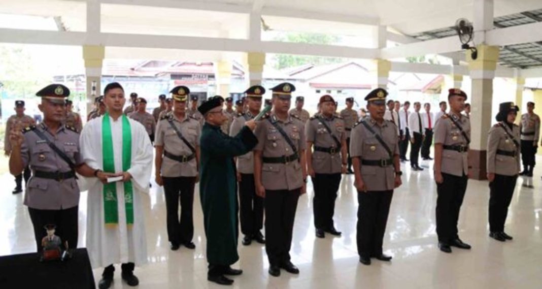 BELITUNG TIMUR, MB1 II Kapolres Belitung Timur AKBP Indra Feri Dalimunthe, S.H., S.I.K., M.H., memimpin pelaksanaan serah terima jabatan Pejabat Utama Polres Belitung Timur di Joglo Graha Patriatama P...