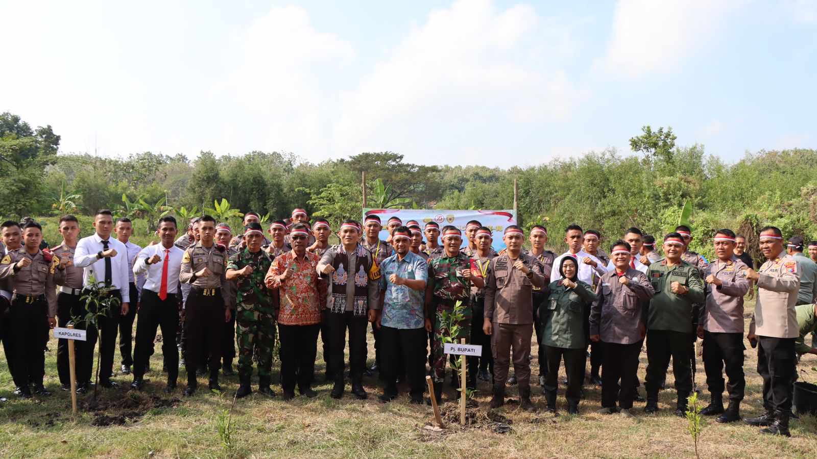 NGANJUK – JATIM, MB1 II Kapolres Nganjuk AKBP Muhammad, S.H., S.I.K., M.Si., didampingi Pejabat Utama (PJU) serta Kapolsek jajara menggelar penanaman pohon, penyebaran benih ikan konsumsi dan pe...