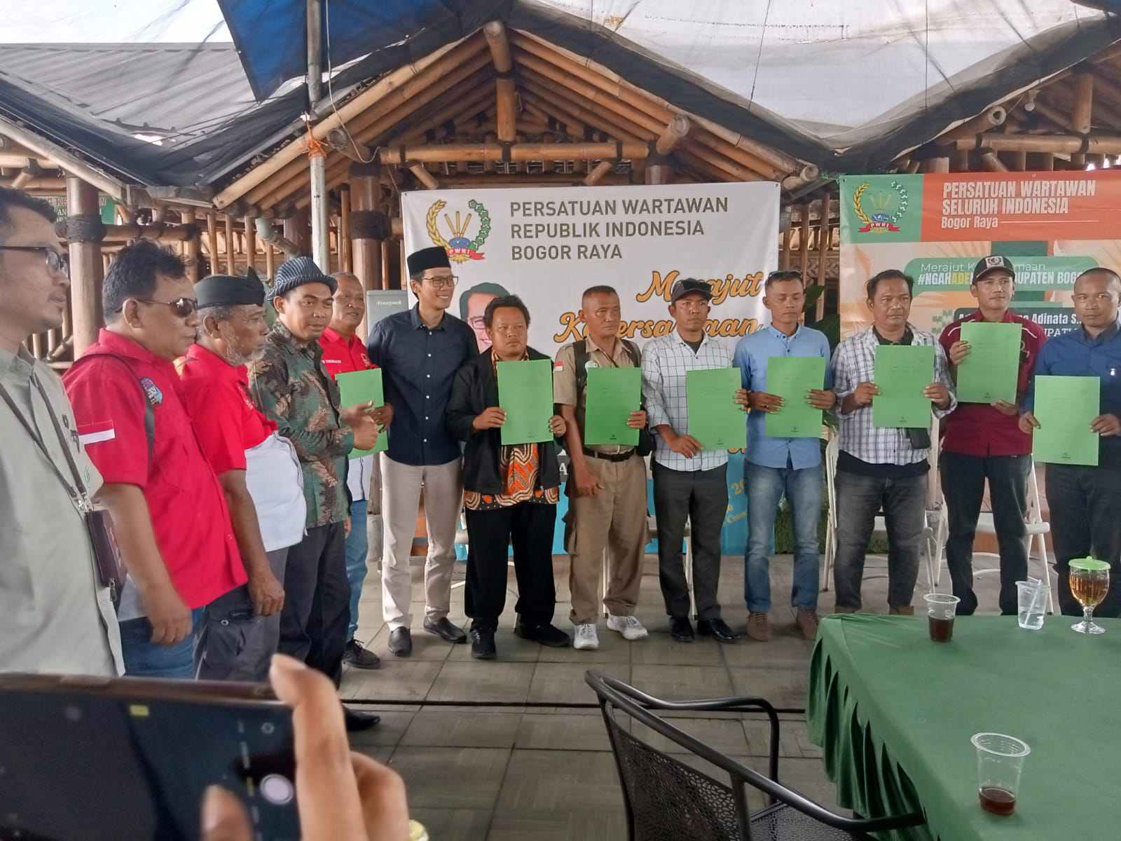 BOGOR, MB1 II Bertempat di Saung Hejo Jl.Cikalong II No.26 RT 05/03 Pagelaran kecamatan Ciomas kabupaten Bogor Ketua DPC PWRI beserta jajaran menyerahkan SK Kordinator Kecamatan Hadir Ketua DPC Pembin...