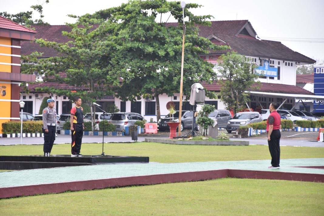 BANGKA BELITUNG, MB1 II Dansat Brimob Polda Kep. Bangka Belitung, Kombes Pol Esty Setyo Nugroho, S.I.K memimpin apel pagi personel Polda Babe Di Halaman Depan Mapolda, Jum’at (07/06/2024). Apel ...