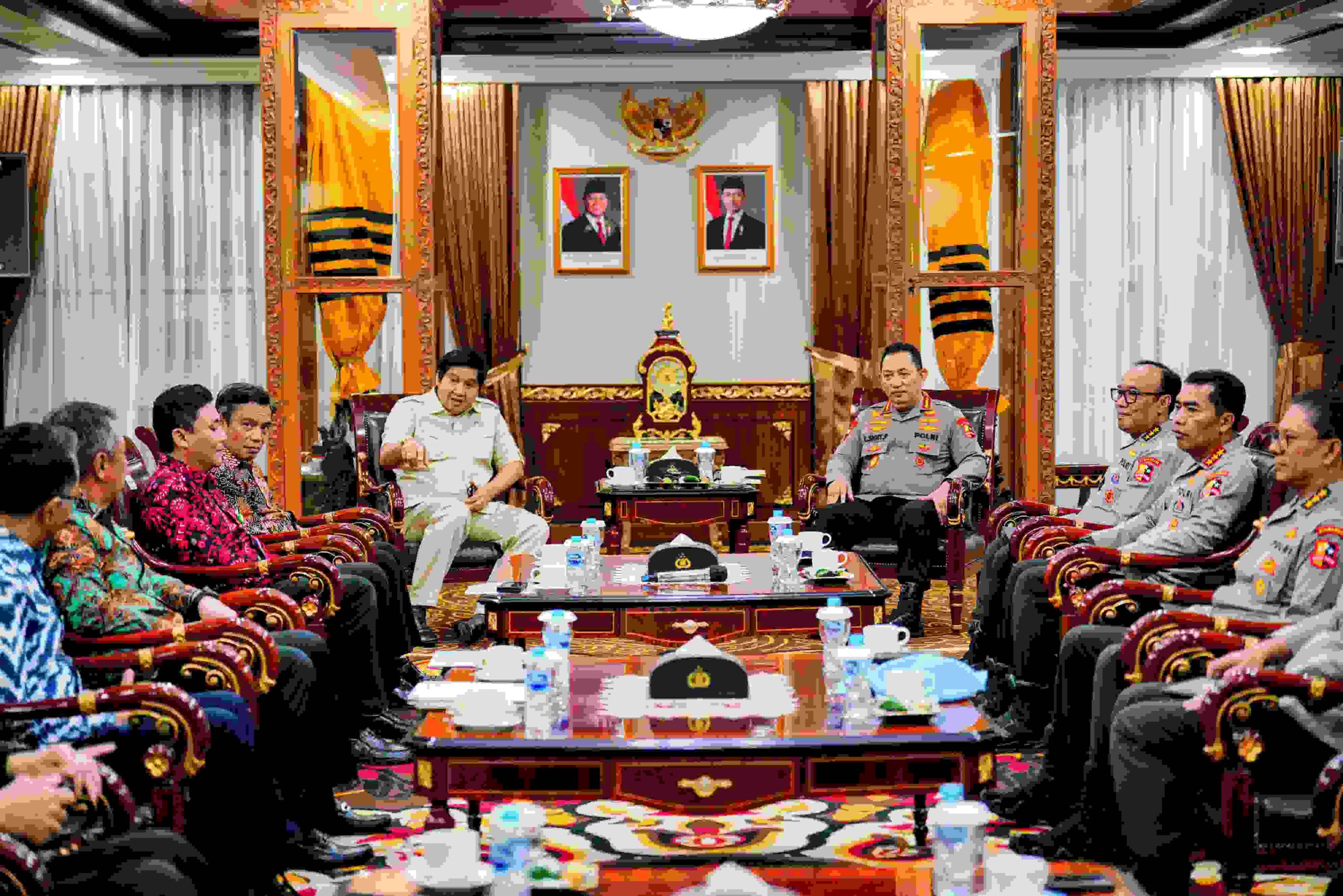 JAKARTA, MB1 II Kapolri Jenderal Polisi Listyo Sigit Prabowo menerima kunjungan Menteri Perumahan dan Kawasan Permukiman RI Maruarar Sirait, beserta jajaran di Markas Besar Kepolisian Republik Indonesia (Mabes Polri) pada Jumat (10/1). Pertemuan tersebut digelar dalam rangka silaturahmi sekaligus membahas salah satu program prioritas nasional, yakni pembangunan 3 juta rumah yang telah dicanangkan oleh Presiden RI Prabowo Subianto.