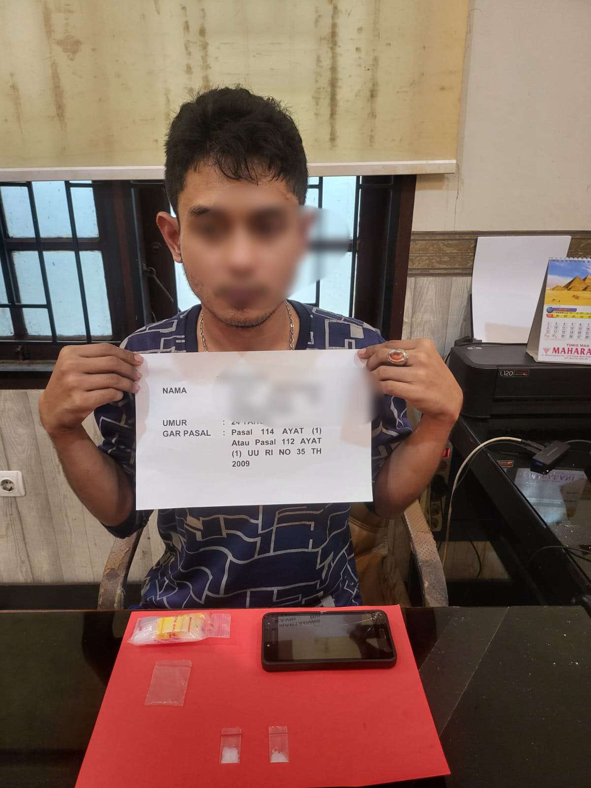 Penangkapan Berdasarkan informasi dari masyarakat pada hari Sabtu, tanggal 11 Januari 2025, sekira pukul 13.00 Wib anggota Sat Resnarkoba Polresta Jambi berhasil mengamankan 1 (satu) orang laki-laki yang mengaku bernama DMD di Jln. Syailendra, Rt. 05, Kelurahan Rawasari, Kecamatan Alam Barajo, Kota Jambi, Propinsi Jambi, pada saat dilakukan penggeledahan dikamar rumah yang ditempati DMD anggota sat resnarkoba polresta jambi ada menemukan 2 (dua) paket diduga narkotika jenis shabu yang tersimpan di selipan belakang pintu kamar DMD pada saat diinterogasi DMD mengakui bahwa 2 (dua) paket narkotika jenis shabu tersebut milik DMD sendiri, yang didapatnya dari seorang laki-laki yang berinisial B (dalam lidik) dengan cara berhutang terlebih dahulu untuk membeli narkotika jenis shabu tersebut seharga Rp. 300.000,- (tiga ratus ribu rupiah).