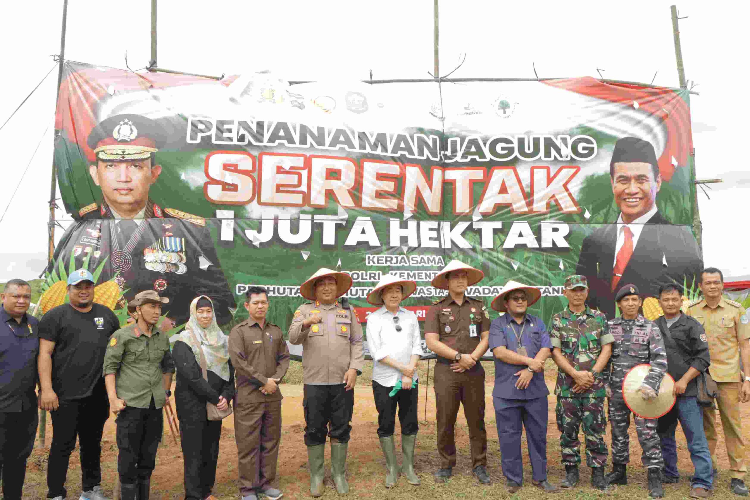 BAKAM – BANGKA, MB1 II Polres Bangka bersama Forum Koordinasi Pimpinan Daerah (Forkopimda) Bangka dan PT Gunung Maras Lestari (PT GML) menggelar kegiatan penanaman jagung serentak di Desa Mangkak, Kecamatan Bakam, Kabupaten Bangka, Selasa tanggal (21/1/2025).