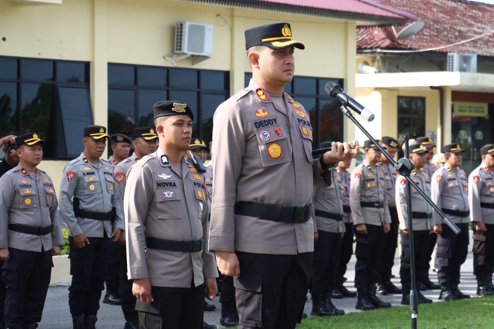 BELITUNG, MB1 II Kapolres Belitung, AKBP Deddy Dwitiya Putra, S.H., S.I.K., memimpin upacara kenaikan pangkat personel Polri dan ASN Polres Belitung, jum’at (31/01/2025).