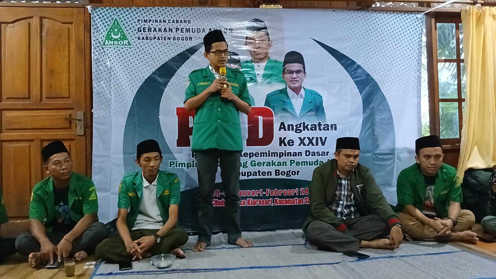 BOGOR, MB1 II GP Ansor Kabupaten Bogor menggelar PKD (Pelatihan Kepemimpinan Dasar) dalam memperingati hari lahir Nahdlatul Ulama (NU) ke 102 tahun, di Vila Cibuluh, Desa Kiarasari Kecamatan Sukajaya, Kamis sore (30/01/2025).
