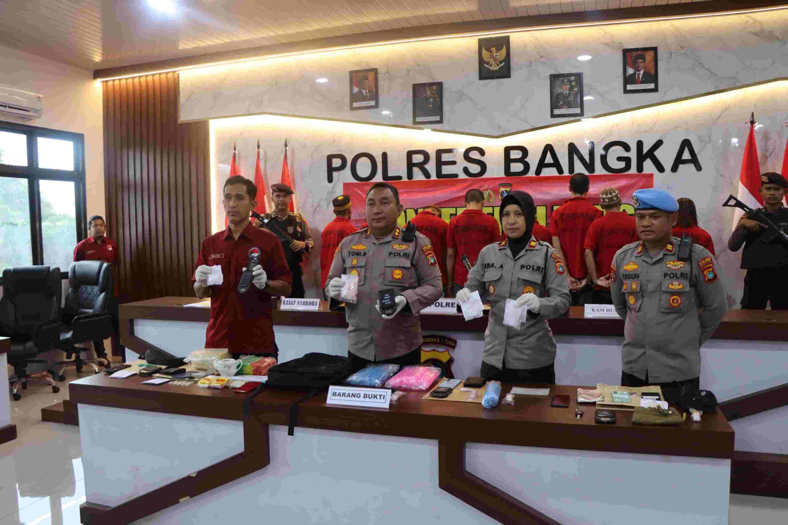 BANGKA, MB1 II Operasi Antik 2025 yang digelar Satuan Reserse Narkoba (Satresnarkoba) Polres Bangka selama 12 hari, dari 20 hingga 31 Januari 2025, berhasil mengungkap 8 kasus narkotika dan 9 tersangka yang diamankan,
