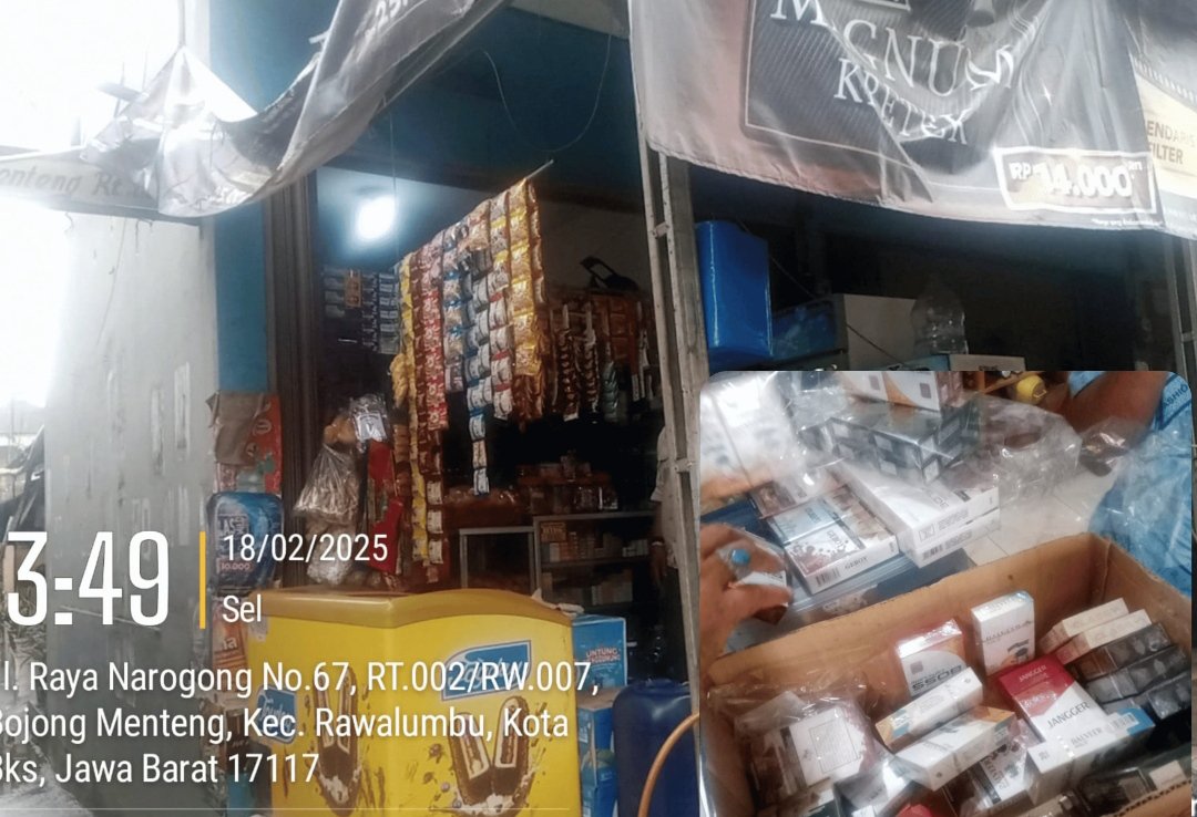 KOTA BEKASI, MB1 II Keberadaan rokok ilegal tanpa cukai kembali marak beredar di masyarakat. Kali ini, awak media berhasil melakukan investigasi undercover di Jalan Raya Narogong, Kelurahan Bojong Menteng, Kecamatan Rawalumbu, Kota Bekasi.