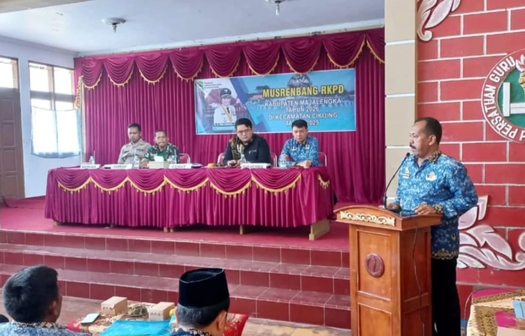 KABUPATEN MAJALENGKA, MB1 II Kapolsek Cikijing di wakili PS. Panit Samapta l Polsek Cikijing Polres Majalengka Polda Jabar Aiptu Eman Subagja menghadiri kegiatan Musyawarah Perencanaan Pembangunan (Musrenbang) Rencana Pemerintah Daerah (RKPD) tahun 2026 tingkat Kecamatan Cikijing Kabupaten Majalengka yang bertempat di Aula PGRI Kecamatan Cikijing, Selasa (18/2/25).