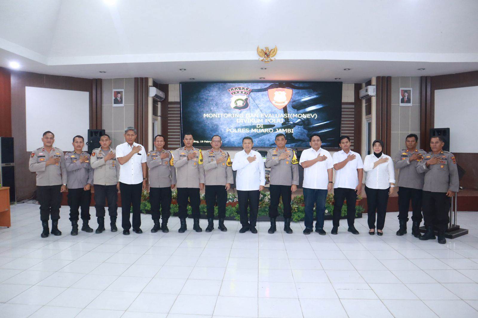MUARO JAMBI, MB1 II Bertempat di Aula Wira Pratama Polres Muaro Jambi telah dilaksanakan Kegiatan Monitoring dan Evaluasi (Monev) dari Divkum Mabes Polri. (19/02)
