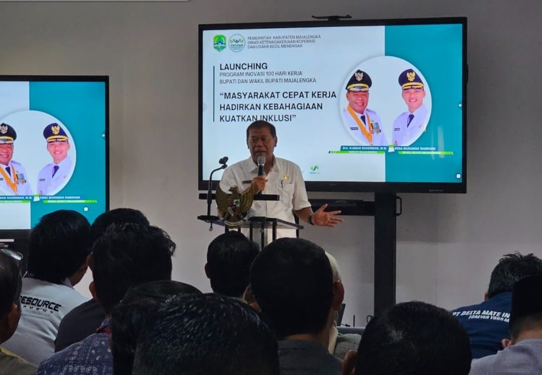 MAJALENGKA, MB1 II Dalam mendukung program 100 hari kerja Bupati H. Eman Suherman dan Wakil Bupati Dena Muhamad Ramdhan melalui Dinas Ketenagakerjaan Koperasi Usaha Kecil dan Menengah (DK2UKM) Kabupaten Majalengka meluncurkan inovasi ” Mata Hati “.