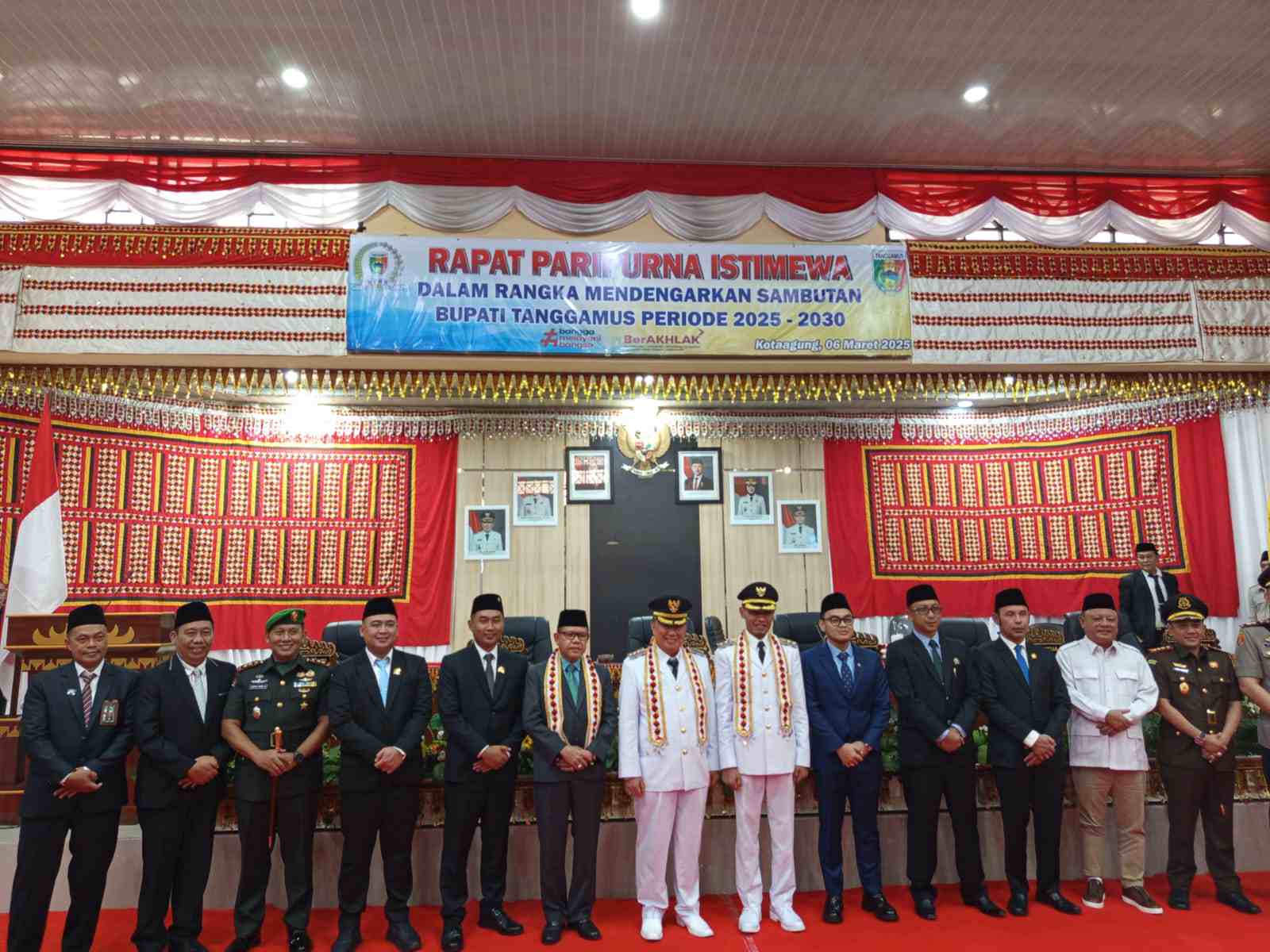 TANGGAMUS, MB1 II Dewan Perwakilan Rakyat Daerah (DPRD) Kabupaten Tanggamus menggelar Rapat Paripurna Istimewa dalam rangka mendengarkan sambutan perdana bupati terpilih periode 2025-2030. Kamis, (6/3/2025).