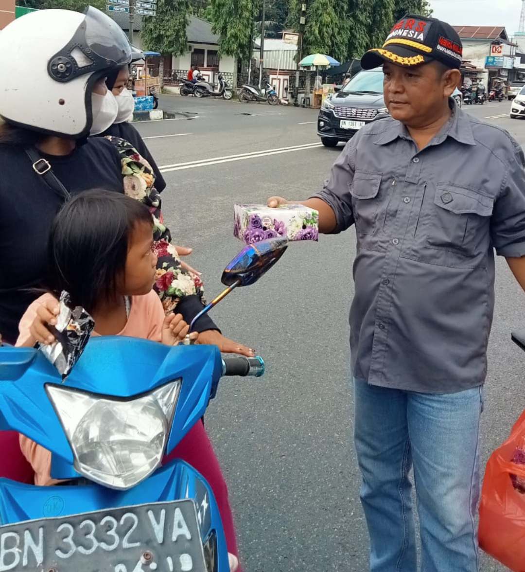 Terlihat, Masyarakat penguna jalan sangat antusias menerima paket takjil dari Media Bhayangkara Satu. yang berbagai macam aneka kue untuk bekal berbuka puasa.
