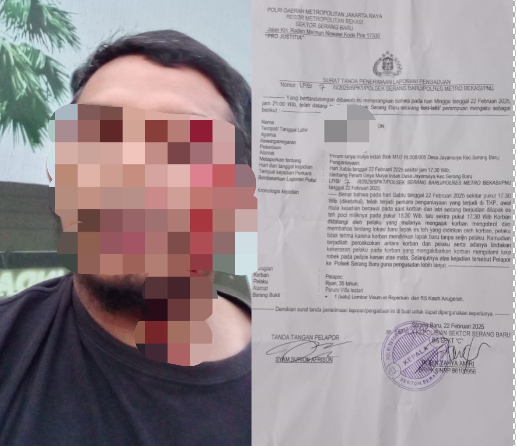 KABUPATEN BEKASI, MB1 II Pusat Bantuan Hukum Satria Advokasi Wicaksana (Pusbakum SAW) siap mengawal kasus penganiayaan yang dialami kliennya (Korban) berinisial SA (42) tahun di Polsek Serang Baru Polrestro Bekasi. Hal ini diungkapkan Y. Dison Tanjung selaku anggota Pusbakum SAW, yang mewakili Ketua Umum Pusbakum SAW, Dr. Muh. Reza Putra, S.H., M.H.,CIL., mengatakan pihaknya sudah melaporkan kepihak yang berwajib berdasarkan LP/B/7/II/2025/SPKT/POLSEK SERANG BARU/POLRES METRO BEKASI/PMJ tanggal 22 Februari 2025.