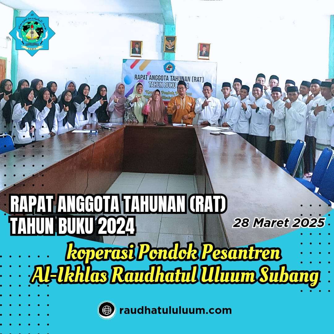Kami seluruh pengurus Yayasan Raudhatul Uluum Subang Terimakasih telah melaksanakan RAT semoga bisa konsisten karena ini merupakan kewajiban koperasi persetiap awal tahun, semoga bisa menghasilkan rumusan dan langkah yang lebih maju demi untuk kesejahteraan Anggota.