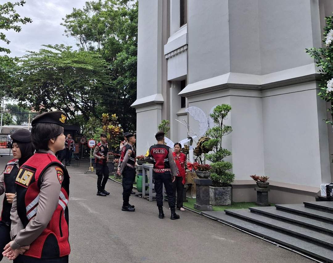 Lanjutnya, para personil juga melaksanakan pengecekan di seputaran gereja guna memastikan hal-hal yang tidak diinginkan dan menjamin situasi tetap aman dan kondusif.