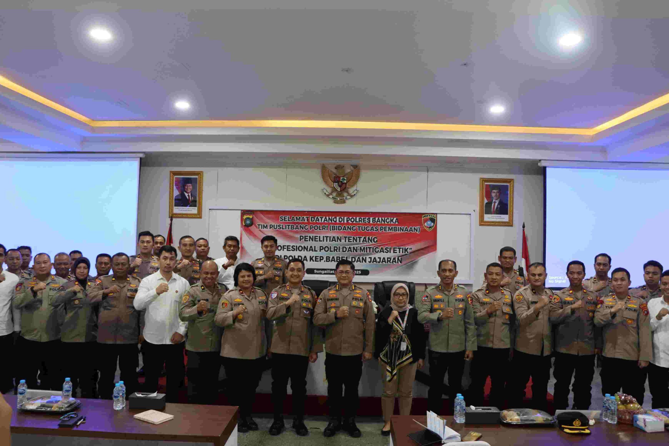 BANGKA, MB1 II Pusat Penelitian dan Pengembangan (Puslitbang) Polri (Bidang Tugas Pembinaan) berkunjung Ke Polres Bangka dalam rangka melaksanakan penelitian tentang Profesional Polri dan mitigasi etika. Bertempat di Aula Tribrata Polres Bangka. Senin (21/4/2025).