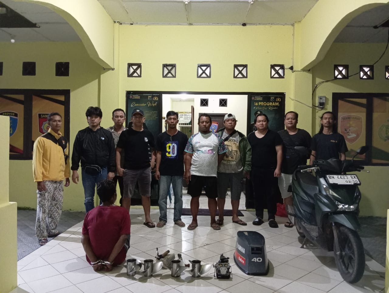 Menindaklanjuti laporan tersebut, Tim Opsnal Satreskrim Polres Bangka melakukan penyelidikan intensif. Hingga akhirnya, pada Jumat malam, 25 April 2025, polisi mendapatkan informasi dari masyarakat di Dusun Bernai, Desa Berbura, mengenai seorang pria yang menawarkan komponen speedboat yang diduga hasil curian.