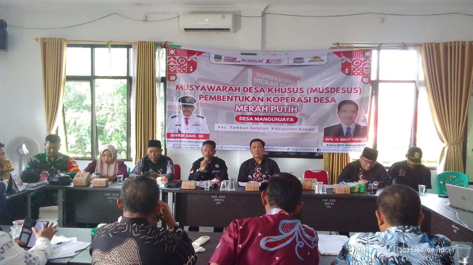 KABUPATEN BEKASI, MB1 II Pemerintah Desa Mangunjaya Kecamatan Tambun Selatan , Kabupaten Bekasi Jawa Barat menggelar Musyawarah Desa Khusus (Musdesus) pada Kamis (00/05/2025)