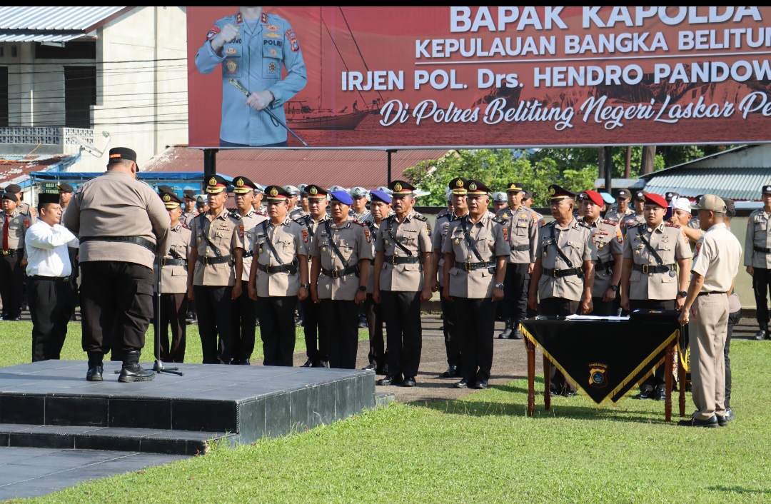 Kapolres Belitung Pimpin Upacara Sertijab Wakapolres, Kabag dan Kasat di Mapolres Belitung