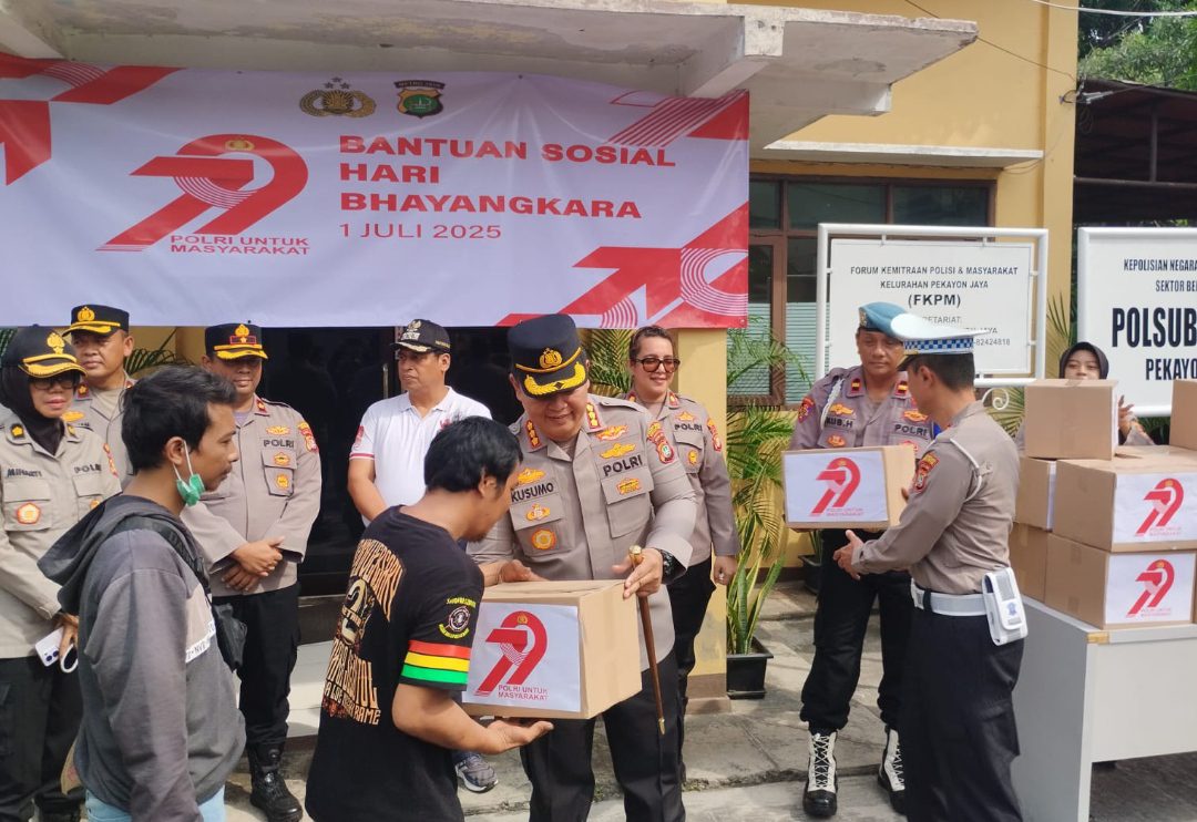 KOTA BEKASI, MB1 II Dalam rangka menyambut Hari Bhayangkara ke-79, Polres Metro Bekasi Kota menggelar kegiatan bakti kesehatan dan pembagian sembako kepada masyarakat, khususnya komunitas pengemudi ojek online. Kegiatan ini berlangsung di Kantor Polsubsektor Pekayon Jaya, Kecamatan Bekasi Selatan, pada Jumat pagi (13/6/2025).
