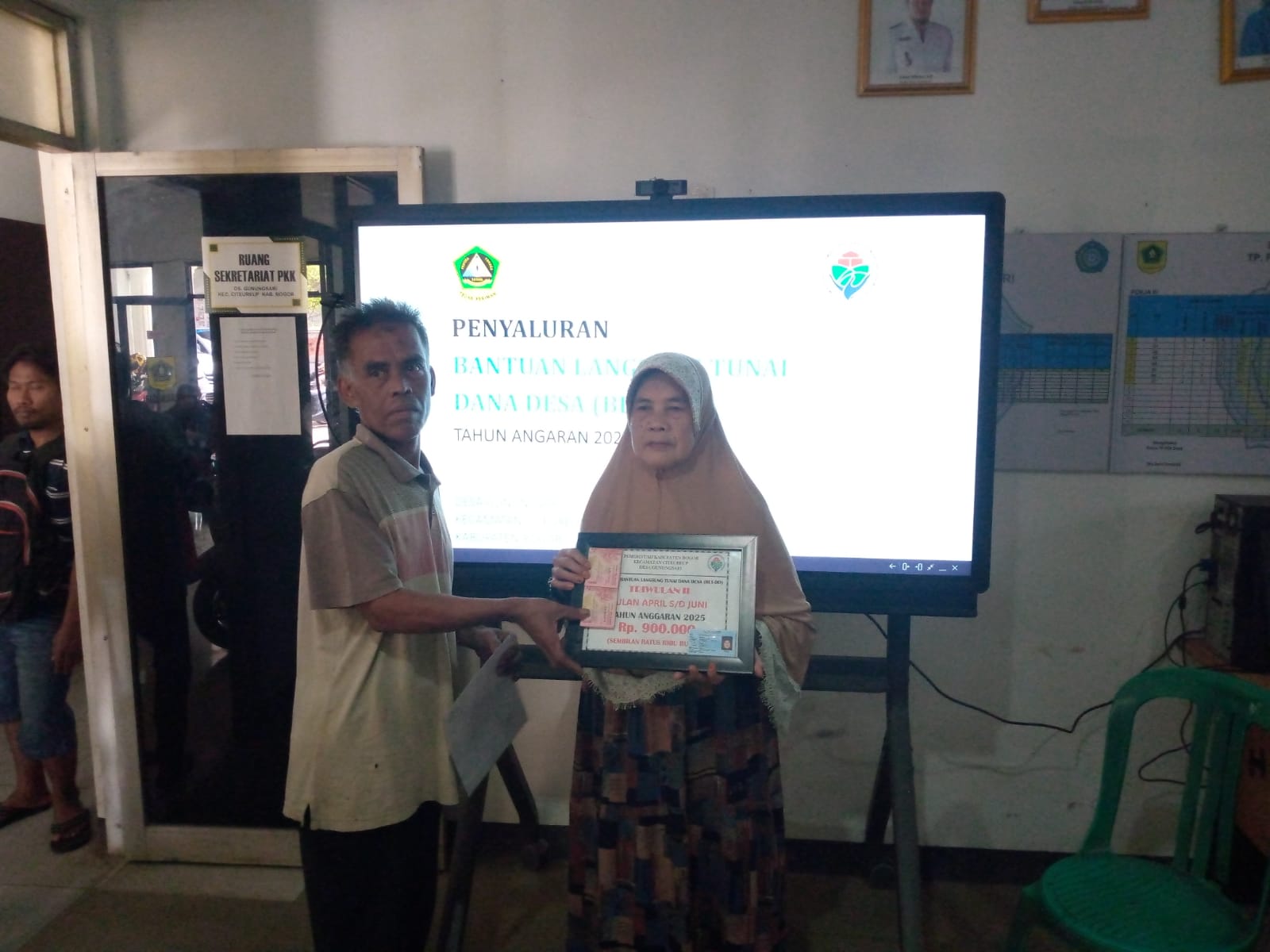 Di ruang kerjanya Kepala Desa Gunung Sari Uwes Wijaya S.E, menjelaskan Bantuan Langsung Tunai (BLT) yang bersumber dari Dana Desa(DD) Tahun 2025 sudah di berikan ke Keluarga Penerima Manfaat sebanyak 76 KPM.