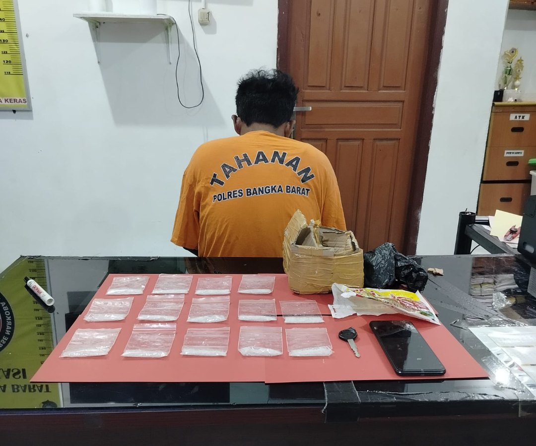 “Benar, anggota Satresnarkoba Polres Bangka Barat telah mengamankan seorang pria berinisial AK terkait dugaan tindak pidana narkotika. Saat dilakukan penggeledahan yang disaksikan Ketua RT setempat, ditemukan 14 paket sabu yang diduga dibuang pelaku,” ujar Iptu Yos Sudarso.