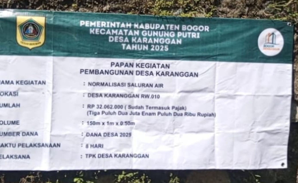 GUNUNG PUTRI – BOGOR, MB1 II Pemerintah Desa Keranggan, Kecamatan Gunung Putri, Kabupaten Bogor, saat ini tengah melaksanakan pengerjaan normalisasi drainase di lingkungan RW 10. Kegiatan ini dikerjakan secara padat karya dengan melibatkan masyarakat setempat sebagai bentuk pemberdayaan warga. Proyek tersebut menggunakan anggaran yang bersumber dari APBN melalui Dana Desa tahap satu, dengan total anggaran sebesar Rp30.062.000 (termasuk pajak).