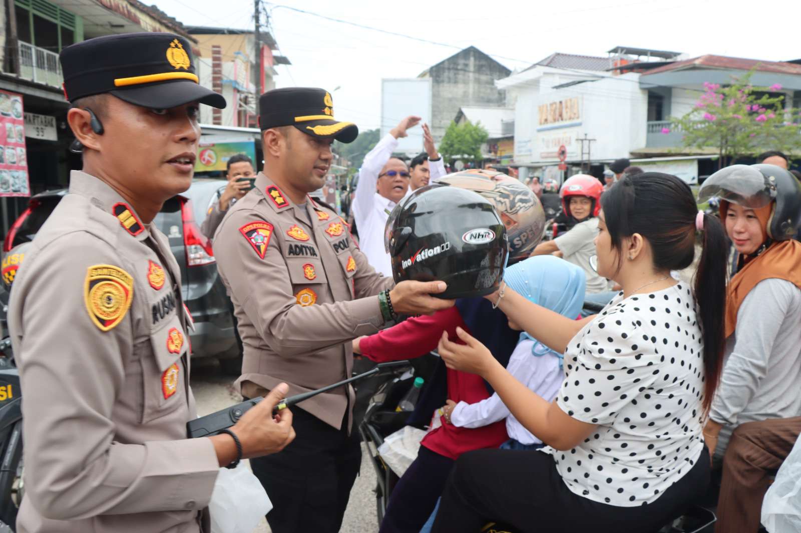 Selain Rustam, puluhan warga lainnya juga tampak menerima helm dan bingkisan dengan antusias. Kegiatan berlangsung aman dan penuh kehangatan antara aparat dan masyarakat.