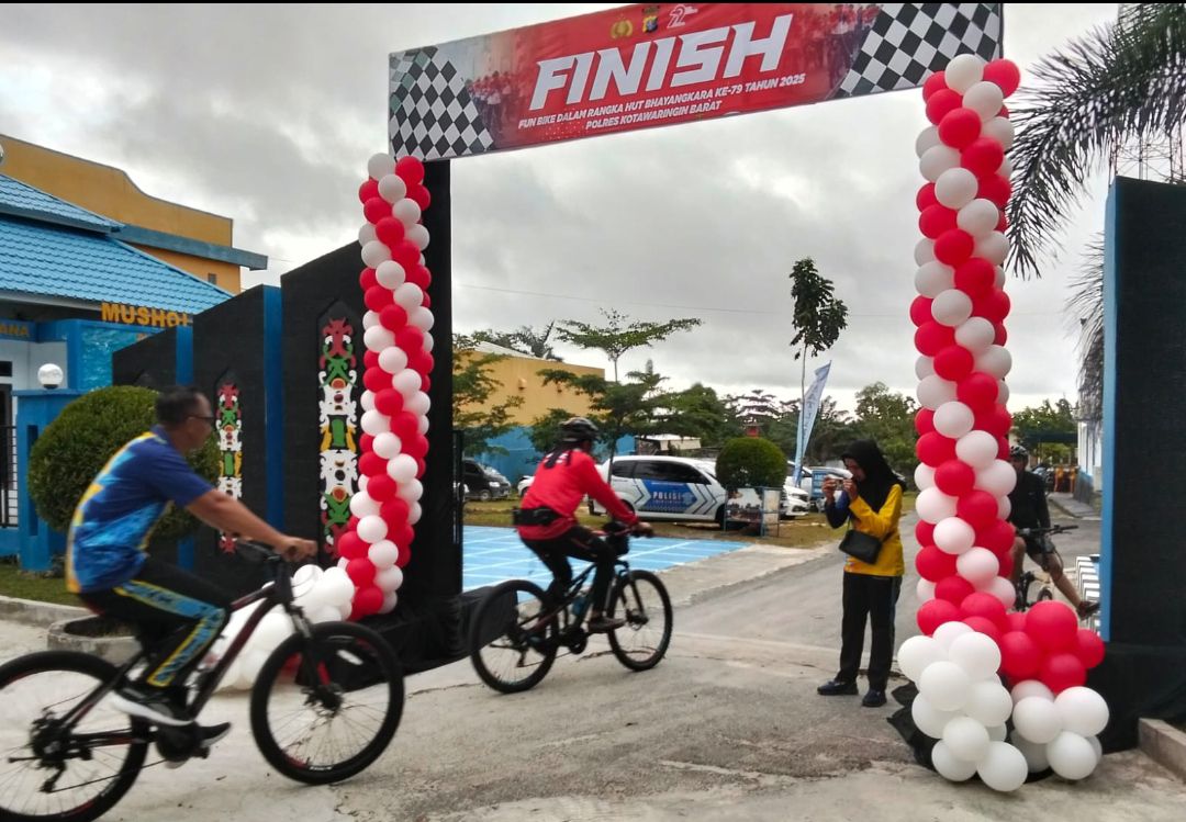 KOTAWARINGIN BARAT – KALTENG, MB1 II Dalam rangka memperingati Hari Ulang Tahun (HUT) Bhayangkara ke 79,Polres Kotawaringin Barat menggelar kegiatan Fun Bike yang diikuti oleh ratusan peserta dari berbagai kalangan. Kegiatan ini bertujuan untuk mempererat tali silahturahmi antara Polri dan masyarakat, serta mempromosikan gaya hidup sehat melalui olah raga bersepeda ,Sabtu (28/06/2025) pagi