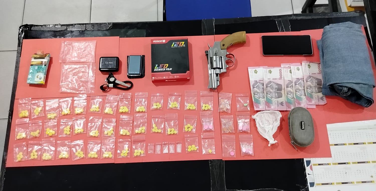 Dalam penggeledahan awal, petugas menemukan 81 butir pil ekstasi dan tiga paket plastik klip bening berisi kristal diduga narkotika jenis shabu yang disimpan di dalam saku tersangka. Penggeledahan dilanjutkan ke rumah pelaku dan kembali ditemukan 120 butir pil ekstasi di gudang serta dua paket klip bening berisi shabu di bawah sofa.