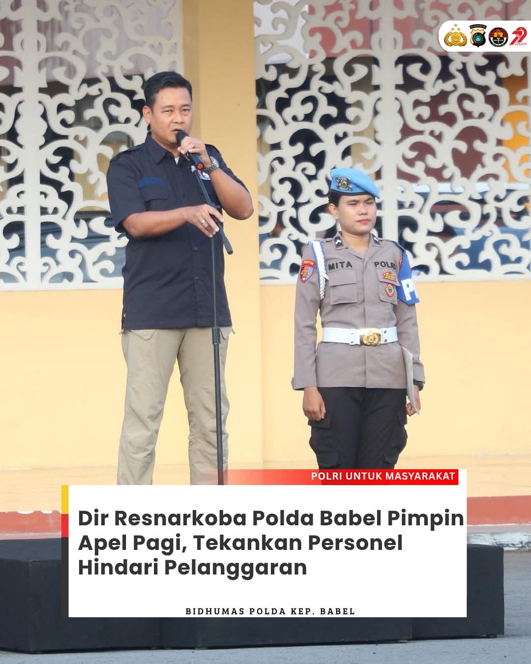 Dalam apel pagi ini, Dir Resnarkoba Polda Babel, menekankan kepada personel untuk menghindari pelanggaran dan menjaga kedisiplinan dalam menjalankan tugas sehari-hari.
