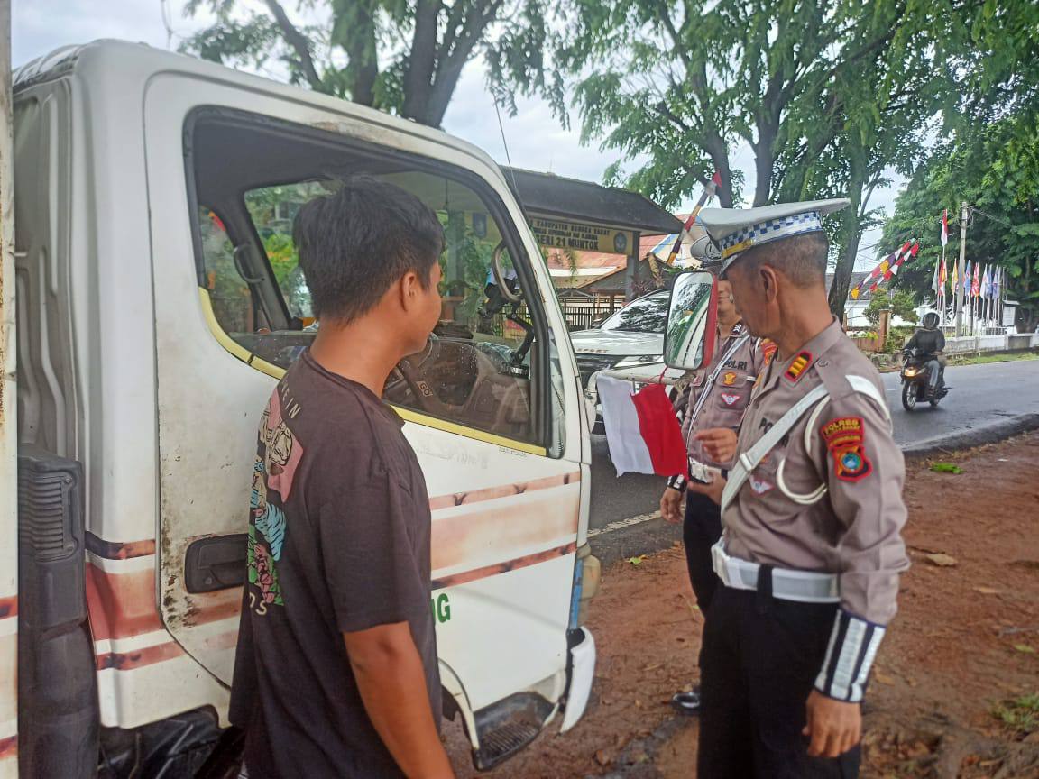 BANGKA BARAT, MB1 II Dalam rangka menyambut Hari Ulang Tahun Republik Indonesia ke-80, Satlantas Polres Bangka Barat menggelar kegiatan “Polantas Menyapa dan Pemasangan Bendera Merah Putih” kepada pengguna jalan di wilayah hukum Polres Bangka Barat, Senin (04/08/2025).