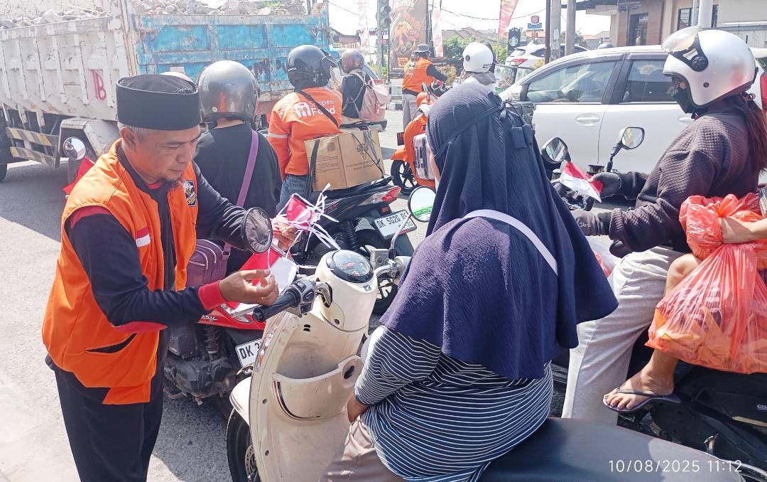 BALI, MB1 II Dalam rangka memperingati Hari Ulang Tahun ke-80 Kemerdekaan Republik Indonesia, Aliansi Kebhinekaan Bali menggelar gerakan pembagian bendera Merah Putih di sejumlah titik strategis di Kota Denpasar. Kegiatan ini dilaksanakan di berbagai lokasi, mulai dari tempat ibadah, sekolah, hingga ruas-ruas jalan raya yang ramai dilalui masyarakat.